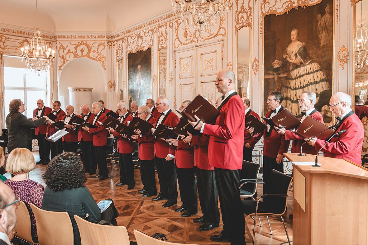 Auch vor 100 Jahren war es kein Geheimnis, wie wertvoll und bereichernd das Singen ist. Singen hat nachweislich einen positiven Einfluss auf unsere körperliche und psychische Gesundheit. Die Augsburger Sängerfreunde feiern in diesem Jahr Ihr 100-Jähriges Bestehen. Bei der Festveranstaltung im Rokokosaal der Regierung von Schwaben wurde dieses Jubiläum im Rahmen einer Festveranstaltung gefeiert. Die Benefizveranstaltung war zu Gunsten unserer Alzheimer Gesellschaft. Die Glückwünsche und den Dank an den Vorsitzenden der Augsburger Sängerfreunde, Herrn Reiner, überbrachten der Vorsitzende der Alzheimer Gesellschaft Augsburg, Jörg Fröhlich, sowie die Vorstandskollegin Brigitta Zitarosa. Ebenfalls für die Alzheimer Gesellschaft dabei war auch der ehemalige Vorsitzende Dr. Jens Schneider. Herzlichen Dank an die Augsburger Sängerfreunde, dass Sie im Jubiläumsjahr an uns gedacht haben. Und bleiben Sie weiterhin bei Stimme! Das Bild unten zeigt die beiden Vorstände Jörg Fröhlich (Alzheimer Gesellschaft Augsburg, links) und Günther Reiner (Augsburger Sängerfreunde) bei der Spendenübergabe.